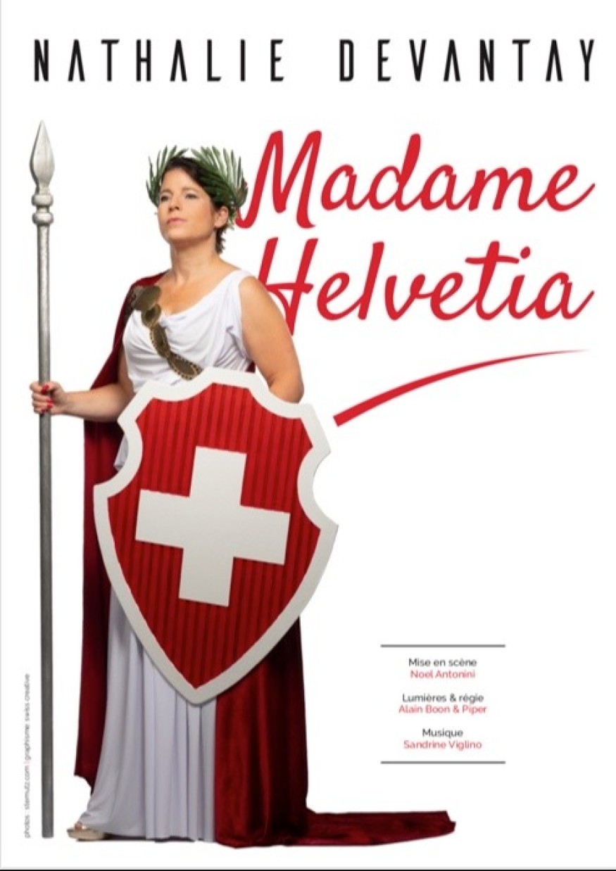 La comique suisse Nathalie Devantay, est "Madame Helvetia" à la salle de spectacle "L'Azimut' à Estavayer-le-Lac, Canton de Fribourg