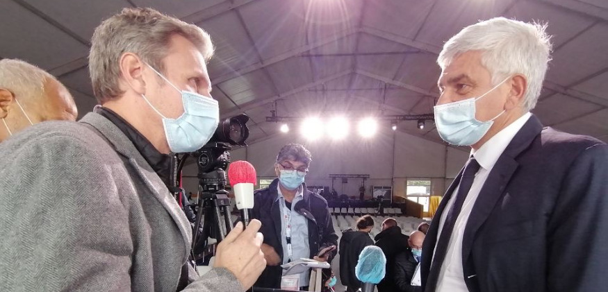 Lors du Forum mondial Normandie pour la paix, Hervé Morin, président de la Région Normandie, ancien ministre de la défense, s'exprime au micro de HopeRadio à propos de l'utilité d'organiser un tel évènement.