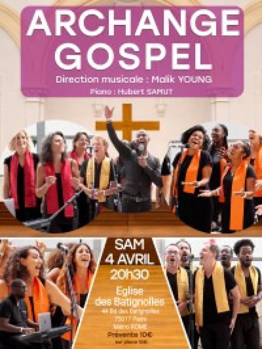 Sous la direction de Malik Young Archange Gospel sera en concert le samedi 04 avril à partir de 20h30 à l’église des Batignolles.