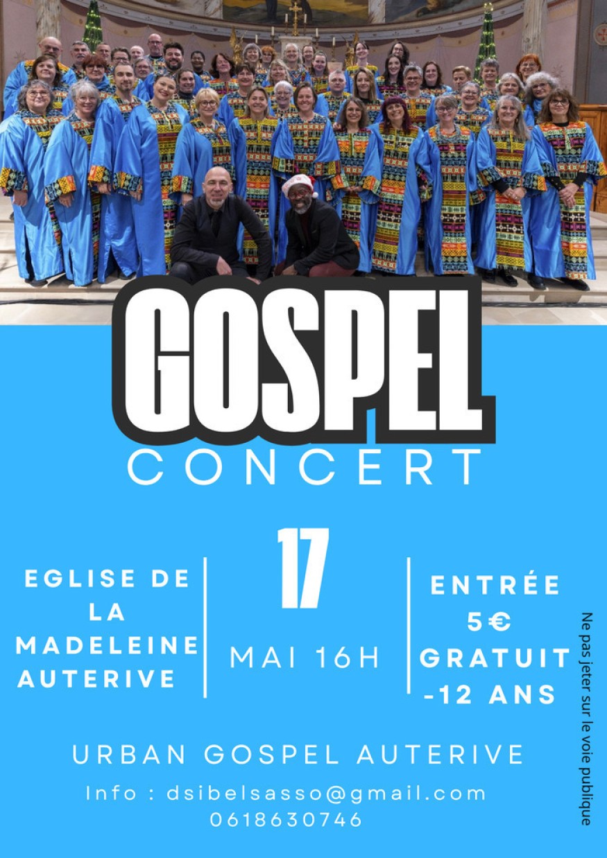 La chorale Urban Gospel Auterive donnera un concert à 16h à l’église de la Madeleine à Auterive prés de Toulouse